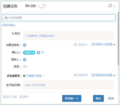 當團隊任務的開關打開后,我們在分配任務的時候就可以選多人,點確定后就可以創建一個團隊任務。
