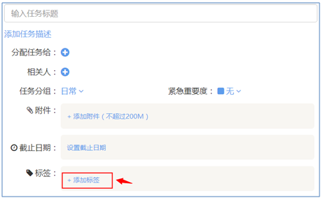 • 標簽在任務創建彈框如下圖所示,如果要刪除標簽,點標簽后面的“X”