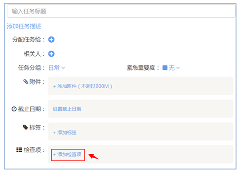 任務檢查項是一種任務進度標記方法,特別是對一些需要較長時間完成的任務需要設置一些檢查項,目的是為了方便任務執行者回報任務的進展。比如有一個任務“X”,這個 X任務完成需要通過3個步驟,那么我們可以給這個X任務設置3個檢查項:步驟1,步驟2, 步驟3, 執行人根據任務的進度在相應的檢查項上打勾,從而使任務的創建者能掌握任務的進度。