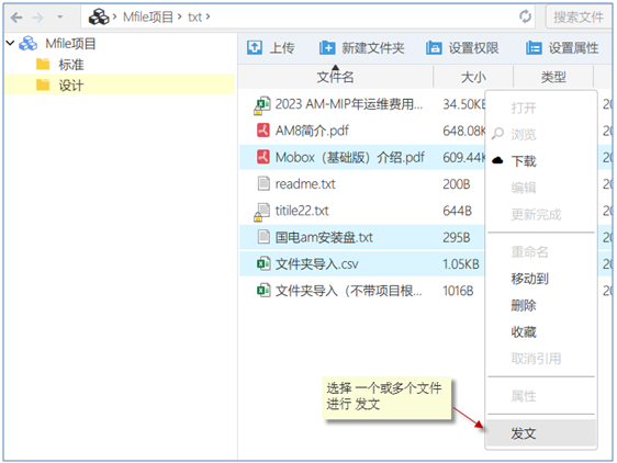 - 選擇一個或多個文件,右鍵,進(jìn)行發(fā)文