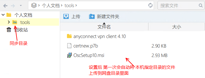 3)設置這個網盤目錄(tools)與本機電腦上指定目錄進行文件同步(本機如:c:\tools)
