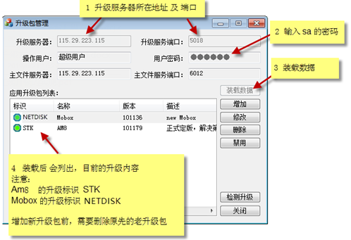 AM及Mobox客戶端可以實(shí)現(xiàn)在線自動(dòng)升級(jí)。過程是,現(xiàn)在服務(wù)器端部署最新的升級(jí)包,AM或Mobox客戶端登錄的時(shí)候,能識(shí)別服務(wù)端已經(jīng)有新的版本,進(jìn)而提醒客戶端進(jìn)行升級(jí)。以下是服務(wù)端配置最新升級(jí)包的方法