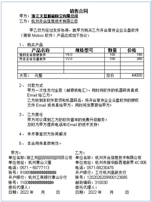 3、電子合同自動生成后的打印效果圖
