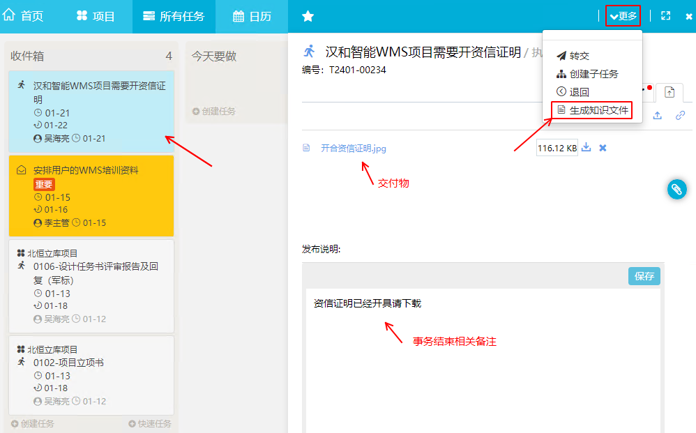 任務(wù)交付(資信證明)上傳后,任務(wù)提交后完成。我們總結(jié)生成知識文件