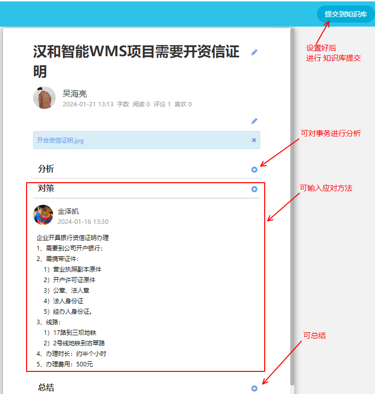- 任務(wù)工作總結(jié),向知識庫提交:
