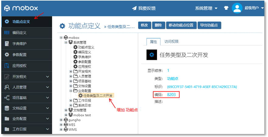 - 增加功能點 任務類型及二次開發(fā) 功能點編號(8203)