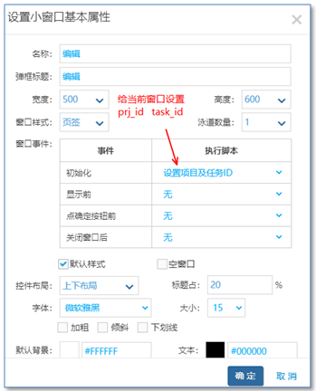 定義小窗口的時候需要注意,有一個窗口初始化腳本要執(zhí)行(目的是個小窗口內(nèi)設置prj_id, task_id)