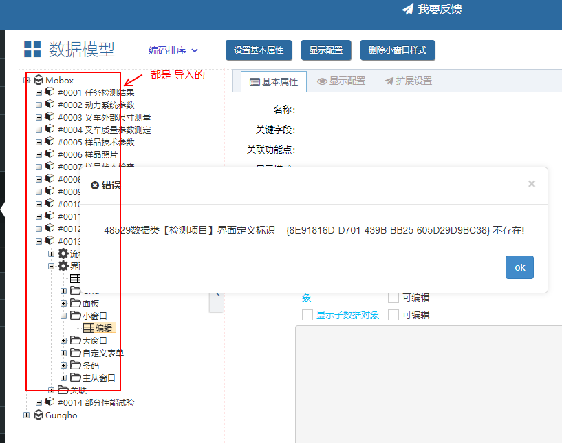 Mobox2數據模型導入后-小窗口或grid點擊報錯(不存在) 2024/02/29 分類:產品中心 問題中心 632 mobox2數據模型導入后 (導入后 提示成功,并沒有提示錯誤) 若點擊模型對象的小窗口,或grid 系統提示錯誤 如 小窗口點擊后報錯 或 grid 點擊后報錯 解決方法 將數據對象重新導入一次 導入后,再次提示 成功 ,如 之后,再點擊前面出錯的小窗口或grid 就正常了 標簽:問題 上一篇: Gungho項目管理系統界面自定義配置 下一篇: Gungho項目擴展屬性二次開發的實現過程