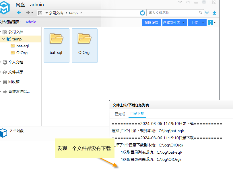 Mobox的文檔柜管理員,是具有對文件夾整體下載的(一般的角色是不能下載文件夾的)。但若出現文檔柜管理不能下載文件夾內的文件。