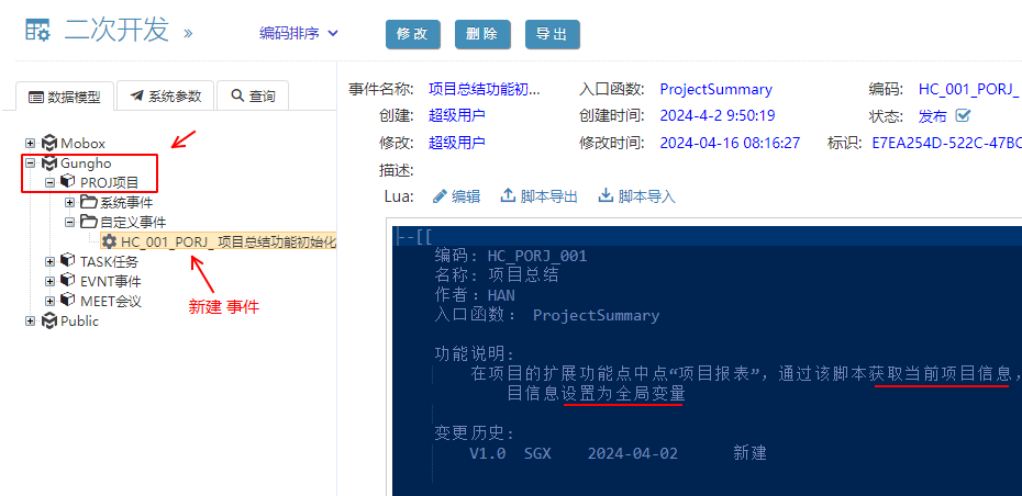 • 為“PROJ項目”開發一個自定義事件(目的獲取當前項目的Prj_id