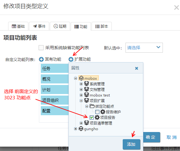 • 點擊 “功能點定義” – 在項目擴展– 新建 3023功能點